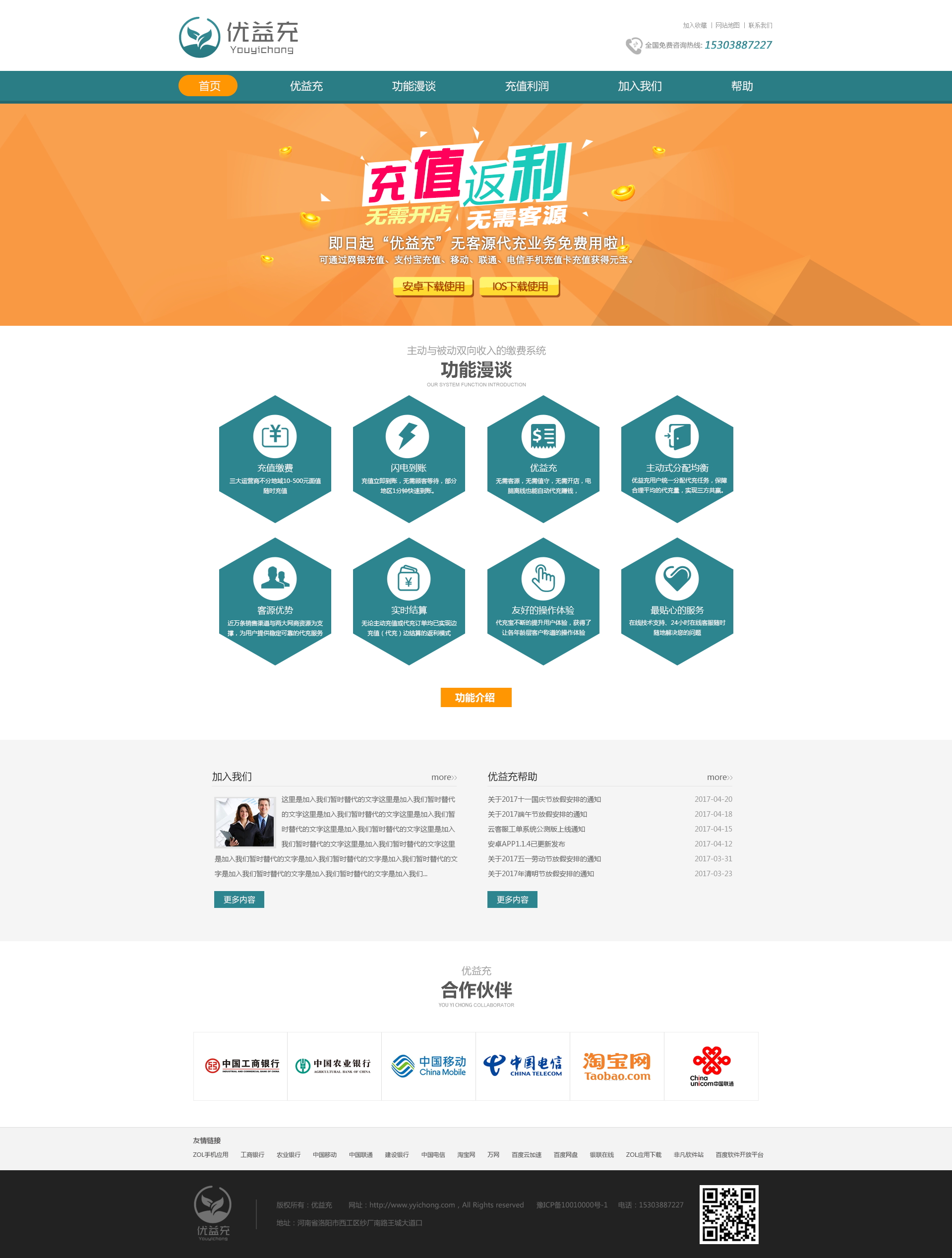 優(yōu)益充——無需開店,無需客源,充值返利,“優(yōu)益充”無客源代充業(yè)務(wù)免費使用,可通過支付寶充值、網(wǎng)銀充值、移動、聯(lián)通、電信手機充值卡充值獲得元寶。
