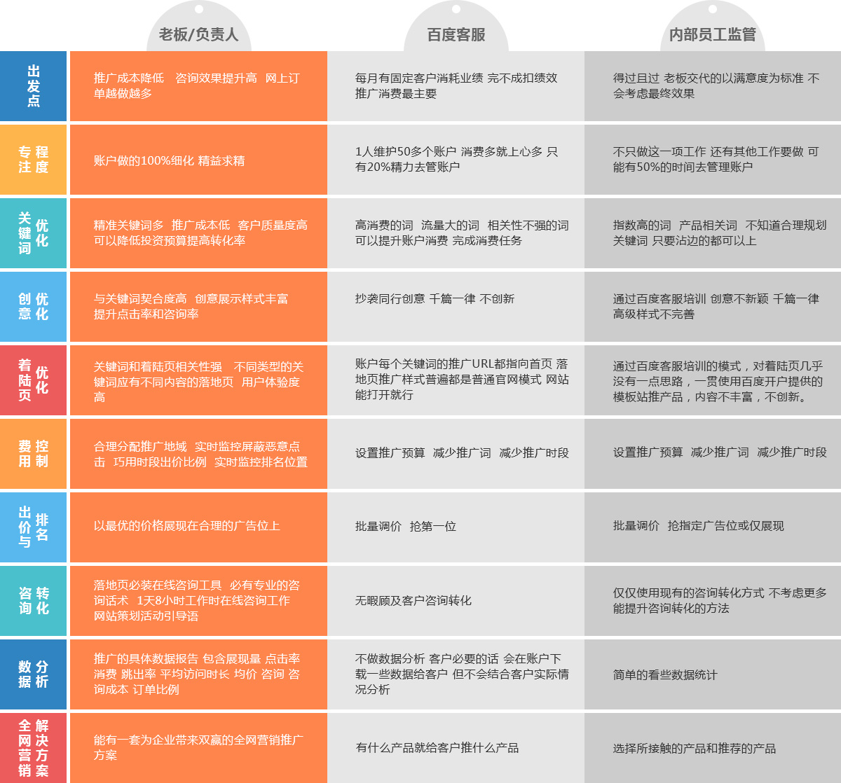 對關(guān)鍵詞優(yōu)、創(chuàng)意、著陸頁精細優(yōu)